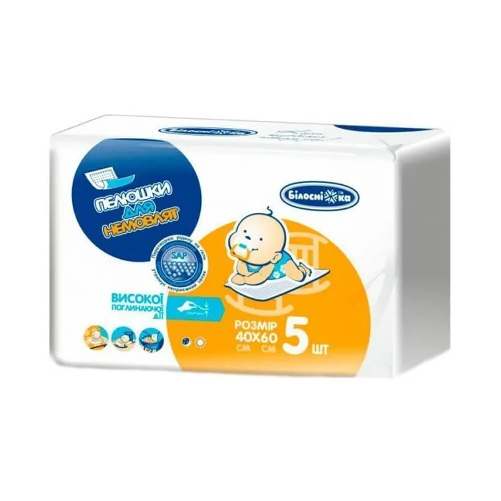 Одноразові пелюшки гігієнічні Білосніжка, 40х60 см, 5 шт.